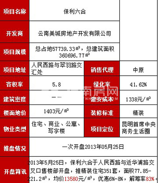 保利六合開盤分析:均價13580元/平米 銷售率83%