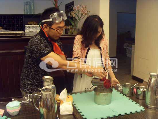 云南房網(wǎng)到達(dá)奧宸財(cái)富廣場(chǎng)售樓部時(shí)并不知是什么活動(dòng),只見(jiàn)活動(dòng)現(xiàn)場(chǎng)煙霧繚繞,靠近煙霧之后隱隱傳來(lái)絲絲涼意,還能聽(tīng)見(jiàn)攪拌器嗡嗡的工作聲。走近一看,最吸引人眼球的是桌面上的幾個(gè)壺,壺嘴里不斷地冒出白煙,不少業(yè)主都在尋思著那是何物,有人猜測(cè)是開(kāi)水,現(xiàn)場(chǎng)工作人員笑而不答。