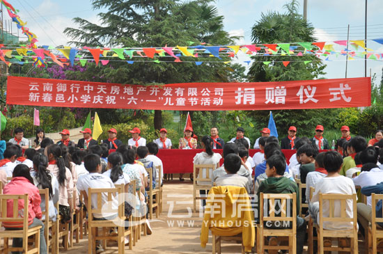 5月31日,御行中天房地產(chǎn)開發(fā)有限公司董事長及總經(jīng)理等一行人在嵩明職教園區(qū)和嵩明縣教育局等相關(guān)部門領(lǐng)導(dǎo)的引領(lǐng)下,來到新春邑小學(xué),與全校師生共度兒童節(jié)。