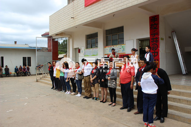當(dāng)天上午由俱樂部工會(huì)及公司各部門代表一行10余人乘坐著愛心專車歷經(jīng)兩小時(shí),來到這個(gè)位于昆明十峰之一“大尖山”山腳的菜子地小學(xué),這座小學(xué)上上下下包括幼兒園共有128位學(xué)生,一下車便看到一個(gè)個(gè)滿臉涂滿胭脂水粉的小臉兒跟猴子屁股似的,瞬間逗樂了在場(chǎng)的所有人。因?yàn)槊魈煺邓麄冏约旱拇蠊?jié)日——“六一兒童節(jié)”所以他們都盛裝打扮準(zhǔn)備演出慶祝節(jié)日。