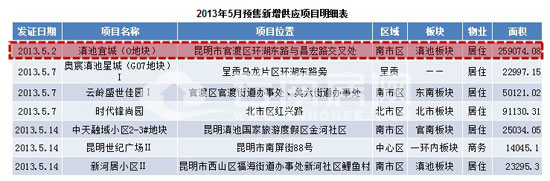 2013年5月昆明房地產(chǎn)項(xiàng)目動態(tài)