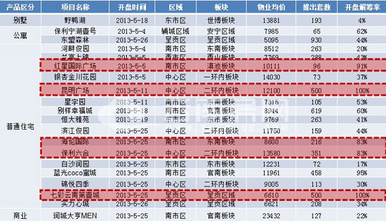 5月市場供需兩旺,第4個(gè)周末10余項(xiàng)目開盤推售將本月這波開盤勢(shì)頭推向高潮。