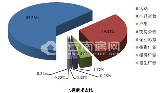 5月媒體廣告訴求點(diǎn)較豐富,以活動(dòng)類廣告訴求最強(qiáng),隨著多項(xiàng)目陸續(xù)交房,交房公告投放量增強(qiáng)。
