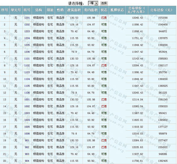 根據(jù)云南省物價局關(guān)于發(fā)布《云南省商品房銷售明碼標(biāo)價實(shí)施細(xì)則(試行)》的通知,現(xiàn)將該項(xiàng)目商品住房的準(zhǔn)售房源及每套房屋價格向社會公布,房地產(chǎn)開發(fā)企業(yè)應(yīng)嚴(yán)格按照公布價格,商品房銷售明碼標(biāo)價實(shí)行一套一標(biāo)。商品房經(jīng)營者應(yīng)當(dāng)對每套商品房按照建筑面具進(jìn)行明碼標(biāo)價,否則,房產(chǎn)登記機(jī)關(guān)不予登記備案。準(zhǔn)售房源及房價信息如下: