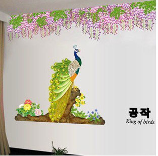 新款秒殺家居客廳背景墻貼樹電視墻可移除大型墻貼紙孔雀開屏