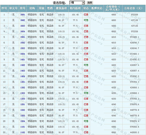 根據(jù)云南省物價局關于發(fā)布《云南省商品房銷售明碼標價實施細則(試行)》的通知,現(xiàn)將該項目商品住房的準售房源及每套房屋價格向社會公布,房地產(chǎn)開發(fā)企業(yè)應嚴格按照公布價格,商品房銷售明碼標價實行一套一標。商品房經(jīng)營者應當對每套商品房按照建筑面具進行明碼標價,否則,房產(chǎn)登記機關不予登記備案。準售房源及房價信息如下: