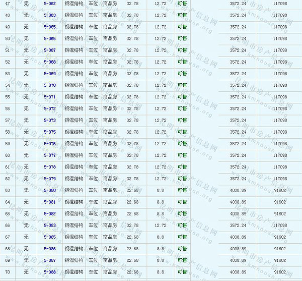 根據(jù)云南省物價(jià)局關(guān)于發(fā)布《云南省商品房銷售明碼標(biāo)價(jià)實(shí)施細(xì)則(試行)》的通知,現(xiàn)將該項(xiàng)目商品住房的準(zhǔn)售房源及每套房屋價(jià)格向社會公布,房地產(chǎn)開發(fā)企業(yè)應(yīng)嚴(yán)格按照公布價(jià)格,商品房銷售明碼標(biāo)價(jià)實(shí)行一套一標(biāo)。商品房經(jīng)營者應(yīng)當(dāng)對每套商品房按照建筑面具進(jìn)行明碼標(biāo)價(jià),否則,房產(chǎn)登記機(jī)關(guān)不予登記備案。準(zhǔn)售房源及房價(jià)信息如下: