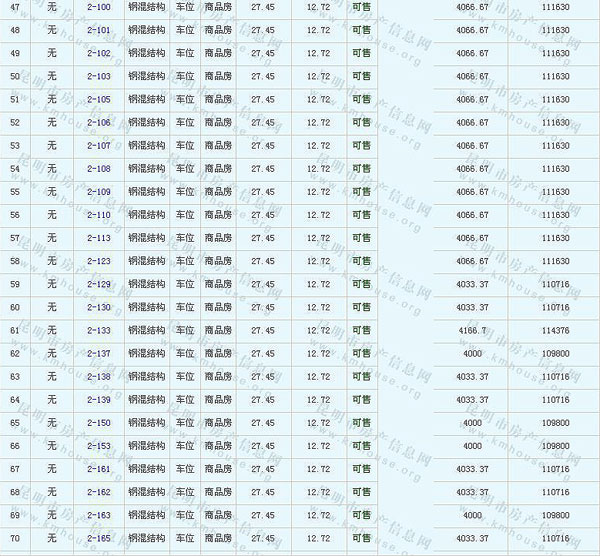 根據(jù)云南省物價(jià)局關(guān)于發(fā)布《云南省商品房銷售明碼標(biāo)價(jià)實(shí)施細(xì)則(試行)》的通知,現(xiàn)將該項(xiàng)目商品住房的準(zhǔn)售房源及每套房屋價(jià)格向社會(huì)公布,房地產(chǎn)開發(fā)企業(yè)應(yīng)嚴(yán)格按照公布價(jià)格,商品房銷售明碼標(biāo)價(jià)實(shí)行一套一標(biāo)。商品房經(jīng)營(yíng)者應(yīng)當(dāng)對(duì)每套商品房按照建筑面具進(jìn)行明碼標(biāo)價(jià),否則,房產(chǎn)登記機(jī)關(guān)不予登記備案。準(zhǔn)售房源及房?jī)r(jià)信息如下: