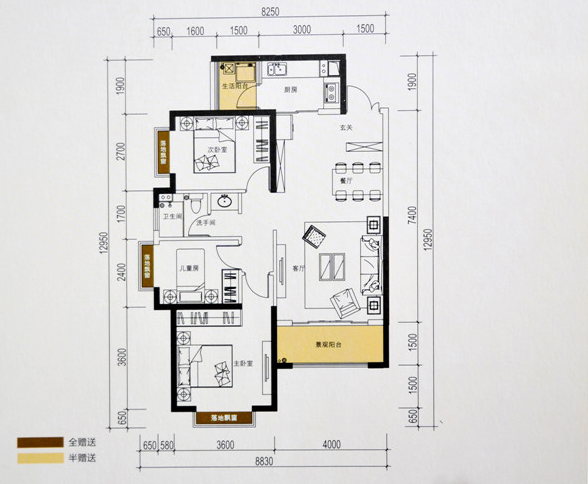 寬敞的客廳區(qū)同樣外接大尺寸陽臺保證很好的通風采光