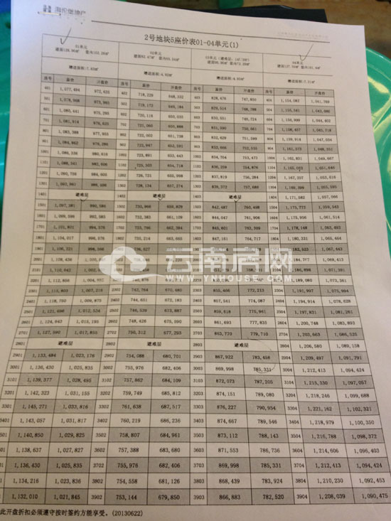 部分房源價(jià)格表