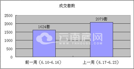 據(jù)云南房網(wǎng)根據(jù)昆明市房產(chǎn)信息網(wǎng)統(tǒng)計(jì)數(shù)據(jù)顯示統(tǒng)計(jì),上周,即2013年06月17日至2013年06月23日,一周內(nèi)昆明主城區(qū)及呈貢新城共成交各類商品房2079套,較前一周1624套增加455套,環(huán)比上漲28.02%;成交面積方面,上周昆明樓市成交商品房總面積為185374.89㎡,較前一周172539.12㎡增加了12835.77㎡,環(huán)比上漲7.44%。
