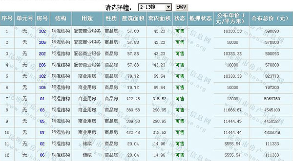 根據(jù)云南省物價局關(guān)于發(fā)布《云南省商品房銷售明碼標(biāo)價實施細(xì)則(試行)》的通知,現(xiàn)將該項目商品住房的準(zhǔn)售房源及每套房屋價格向社會公布,房地產(chǎn)開發(fā)企業(yè)應(yīng)嚴(yán)格按照公布價格,商品房銷售明碼標(biāo)價實行一套一標(biāo)。商品房經(jīng)營者應(yīng)當(dāng)對每套商品房按照建筑面具進(jìn)行明碼標(biāo)價,否則,房產(chǎn)登記機關(guān)不予登記備案。準(zhǔn)售房源及房價信息如下:
