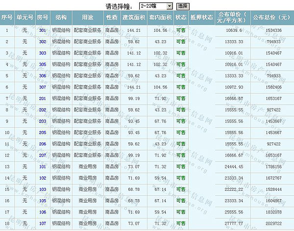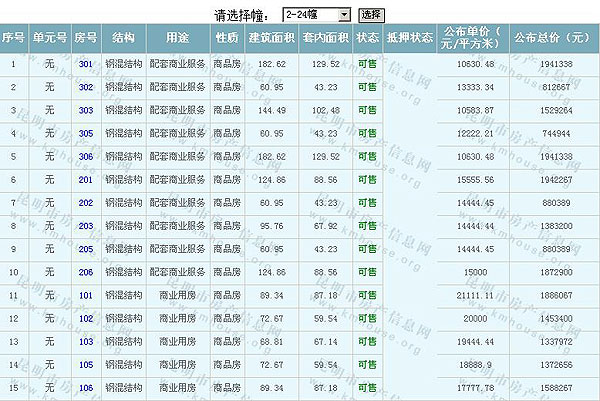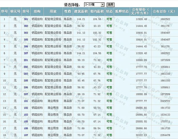 根據(jù)云南省物價(jià)局關(guān)于發(fā)布《云南省商品房銷售明碼標(biāo)價(jià)實(shí)施細(xì)則(試行)》的通知,現(xiàn)將該項(xiàng)目商品住房的準(zhǔn)售房源及每套房屋價(jià)格向社會(huì)公布,房地產(chǎn)開(kāi)發(fā)企業(yè)應(yīng)嚴(yán)格按照公布價(jià)格,商品房銷售明碼標(biāo)價(jià)實(shí)行一套一標(biāo)。商品房經(jīng)營(yíng)者應(yīng)當(dāng)對(duì)每套商品房按照建筑面具進(jìn)行明碼標(biāo)價(jià),否則,房產(chǎn)登記機(jī)關(guān)不予登記備案。準(zhǔn)售房源及房?jī)r(jià)信息如下: