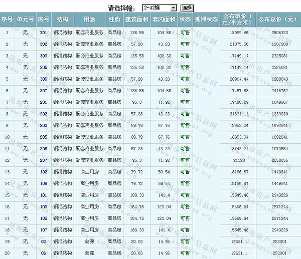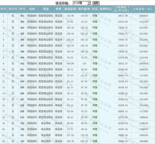 根據(jù)云南省物價局關(guān)于發(fā)布《云南省商品房銷售明碼標(biāo)價實(shí)施細(xì)則(試行)》的通知,現(xiàn)將該項(xiàng)目商品住房的準(zhǔn)售房源及每套房屋價格向社會公布,房地產(chǎn)開發(fā)企業(yè)應(yīng)嚴(yán)格按照公布價格,商品房銷售明碼標(biāo)價實(shí)行一套一標(biāo)。商品房經(jīng)營者應(yīng)當(dāng)對每套商品房按照建筑面具進(jìn)行明碼標(biāo)價,否則,房產(chǎn)登記機(jī)關(guān)不予登記備案。準(zhǔn)售房源及房價信息如下: