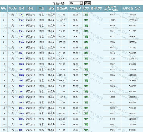 時代鋒尚園準(zhǔn)售房源及房價公示