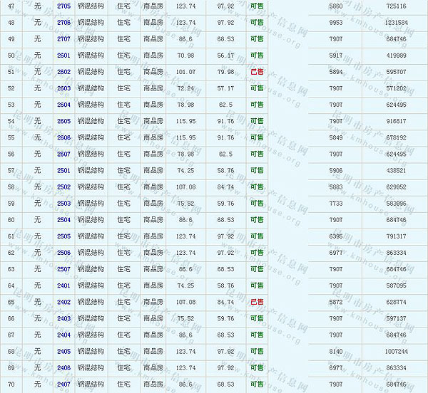 根據(jù)云南省物價(jià)局關(guān)于發(fā)布《云南省商品房銷售明碼標(biāo)價(jià)實(shí)施細(xì)則(試行)》的通知,現(xiàn)將該項(xiàng)目商品住房的準(zhǔn)售房源及每套房屋價(jià)格向社會(huì)公布,房地產(chǎn)開發(fā)企業(yè)應(yīng)嚴(yán)格按照公布價(jià)格,商品房銷售明碼標(biāo)價(jià)實(shí)行一套一標(biāo)。商品房經(jīng)營者應(yīng)當(dāng)對每套商品房按照建筑面具進(jìn)行明碼標(biāo)價(jià),否則,房產(chǎn)登記機(jī)關(guān)不予登記備案。準(zhǔn)售房源及房價(jià)信息如下: