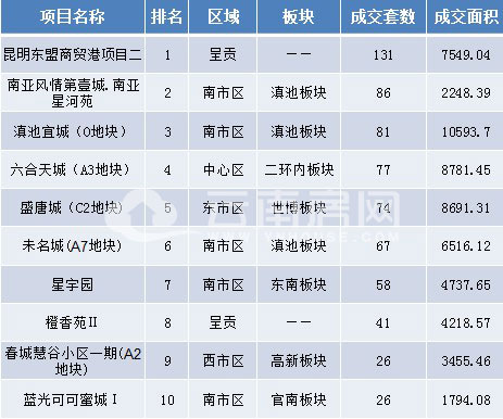 本周備案前三強(qiáng)分別位于呈貢與南市區(qū),排名先后順序?yàn)椋豪ッ鳀|盟商貿(mào)港項(xiàng)目二、南亞風(fēng)情第壹城.南亞星河苑與滇池宜城(0地塊)。注:由于備案系統(tǒng)公布數(shù)據(jù)局限,top10排名僅做參考。