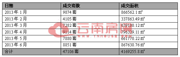 2013年上半年昆明商品房成交報告:成交面積超400萬㎡ 同比大漲64.67%