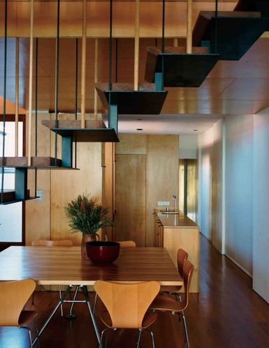 JohnWilkin和SusannePini花了兩年時間為自己一家人設(shè)計(jì)房子,二人既是建筑師又是客戶的雙重身分,加上對完美細(xì)節(jié)的追求,令這個家永遠(yuǎn)處于"尚在進(jìn)行中"的狀態(tài)。THEOWNERSJohnWilkin和SusannePini夫婦同是建筑師,現(xiàn)與六歲的兒子Tom和三歲的女兒Ava居于澳大利亞。他們設(shè)計(jì)的“差不多”宅邸在2009年獲得了澳大利亞皇家建筑師學(xué)會小項(xiàng)目設(shè)計(jì)獎。通往夾層的鋼木結(jié)構(gòu)樓梯懸于起居室和餐室上方,把起居室劃分成幾個區(qū)域,而又絲毫無損于空間的完整性。