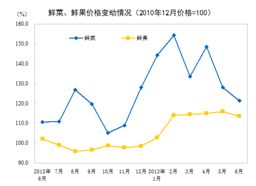國家統(tǒng)計局:2013年6月CPI同比上漲2.7% 食品價格同比上漲4.9%