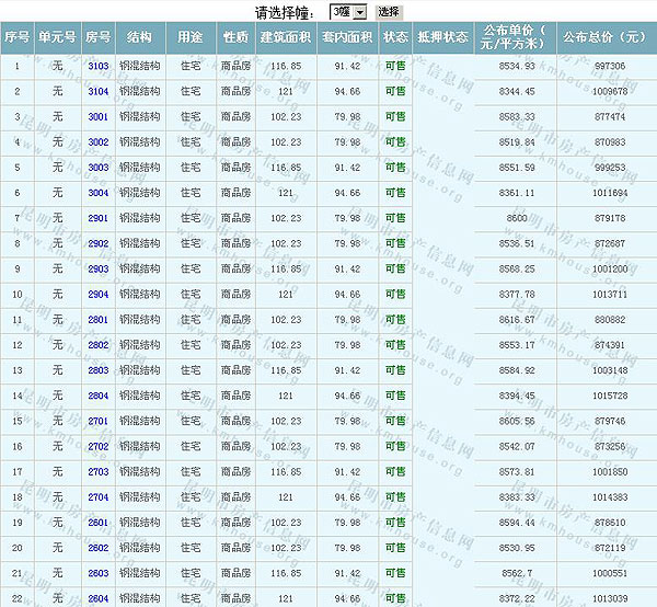 根據(jù)云南省物價局關(guān)于發(fā)布《云南省商品房銷售明碼標價實施細則(試行)》的通知,現(xiàn)將該項目商品住房的準售房源及每套房屋價格向社會公布,房地產(chǎn)開發(fā)企業(yè)應嚴格按照公布價格,商品房銷售明碼標價實行一套一標。商品房經(jīng)營者應當對每套商品房按照建筑面具進行明碼標價,否則,房產(chǎn)登記機關(guān)不予登記備案。準售房源及房價信息如下: