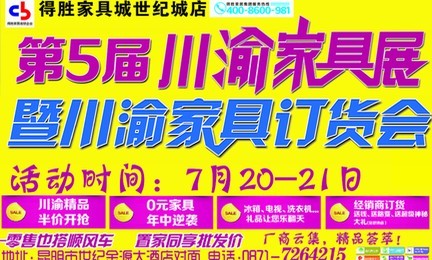 據(jù)悉:得勝家具世紀(jì)城店將于7月20日至21日在店舉行”2013第五屆得勝川渝家具展0元家具搶購”大型活動(dòng)。