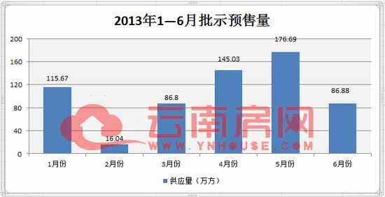 2013年上半年昆明預售證發(fā)放情況報告:62項目627萬方獲準售 同比上漲19.78%