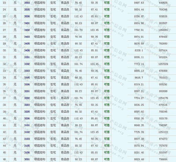 根據(jù)云南省物價局關(guān)于發(fā)布《云南省商品房銷售明碼標(biāo)價實(shí)施細(xì)則(試行)》的通知,現(xiàn)將該項(xiàng)目商品住房的準(zhǔn)售房源及每套房屋價格向社會公布,房地產(chǎn)開發(fā)企業(yè)應(yīng)嚴(yán)格按照公布價格,商品房銷售明碼標(biāo)價實(shí)行一套一標(biāo)。商品房經(jīng)營者應(yīng)當(dāng)對每套商品房按照建筑面具進(jìn)行明碼標(biāo)價,否則,房產(chǎn)登記機(jī)關(guān)不予登記備案。準(zhǔn)售房源及房價信息如下: