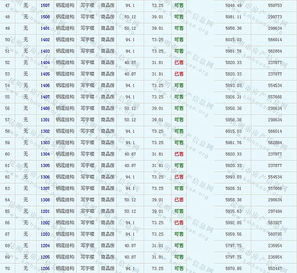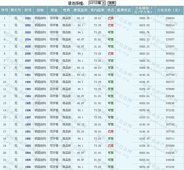 根據(jù)云南省物價(jià)局關(guān)于發(fā)布《云南省商品房銷售明碼標(biāo)價(jià)實(shí)施細(xì)則(試行)》的通知,現(xiàn)將該項(xiàng)目商品住房的準(zhǔn)售房源及每套房屋價(jià)格向社會(huì)公布,房地產(chǎn)開(kāi)發(fā)企業(yè)應(yīng)嚴(yán)格按照公布價(jià)格,商品房銷售明碼標(biāo)價(jià)實(shí)行一套一標(biāo)。商品房經(jīng)營(yíng)者應(yīng)當(dāng)對(duì)每套商品房按照建筑面具進(jìn)行明碼標(biāo)價(jià),否則,房產(chǎn)登記機(jī)關(guān)不予登記備案。準(zhǔn)售房源及房?jī)r(jià)信息如下:
