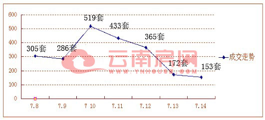 上周昆明樓市成交商品房2233套 環(huán)比下跌了3.63%(2013.07.08-2013.07.14)