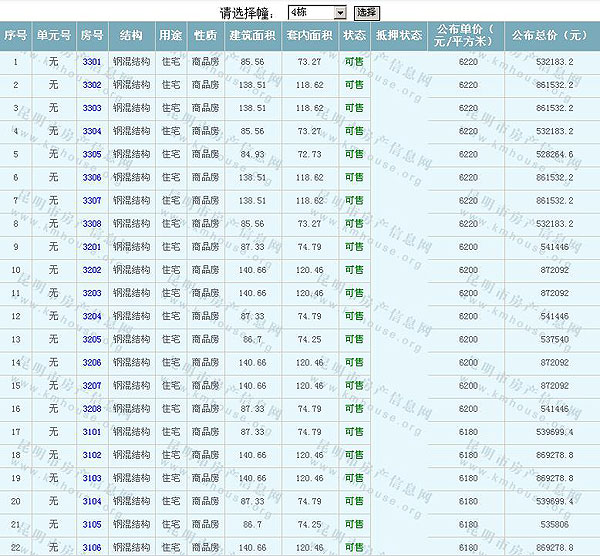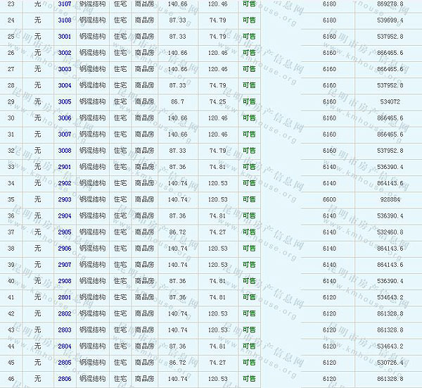 未名城(A8地塊)準(zhǔn)售房源及房價公示