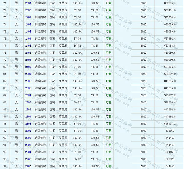 未名城(A8地塊)準(zhǔn)售房源及房價公示
