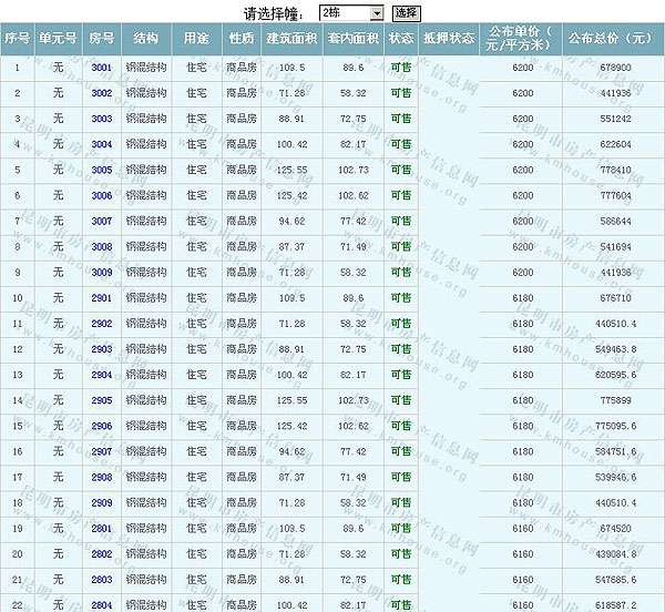未名城(A8地塊)準(zhǔn)售房源及房價公示
