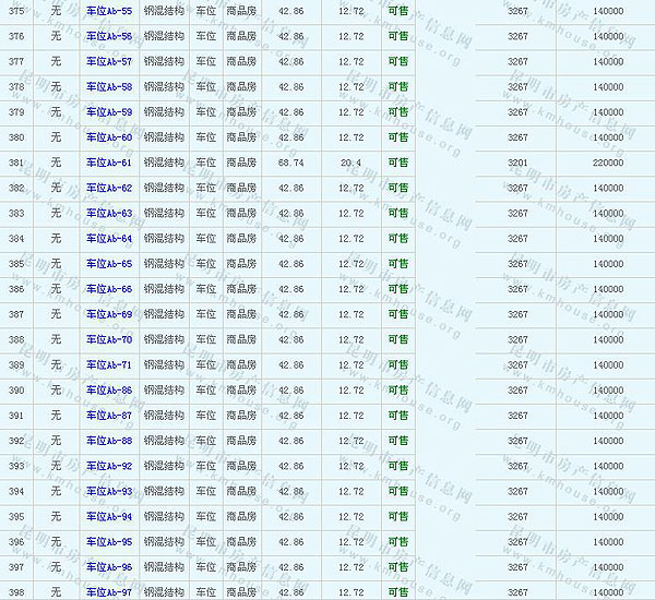 未名城(A8地塊)地下車庫及售價公示