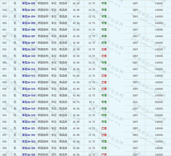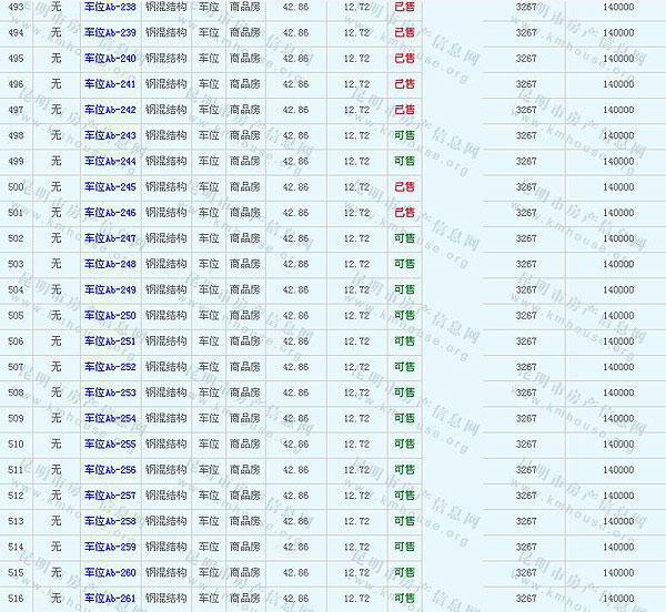 未名城(A8地塊)地下車(chē)庫(kù)及售價(jià)公示