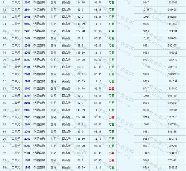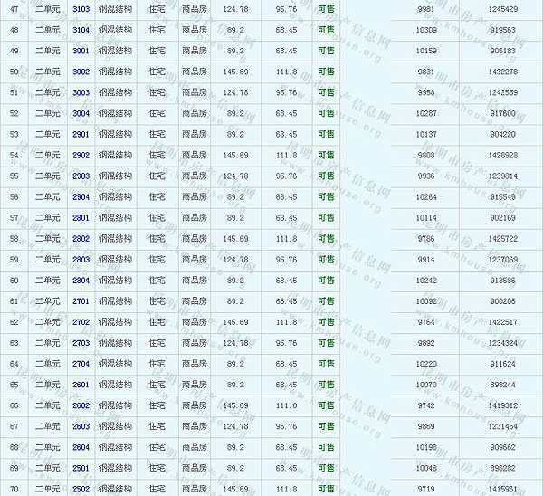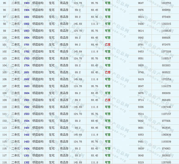 南窯鑫都韻城Ⅱ6、8幢樓準售房源及房價公示
