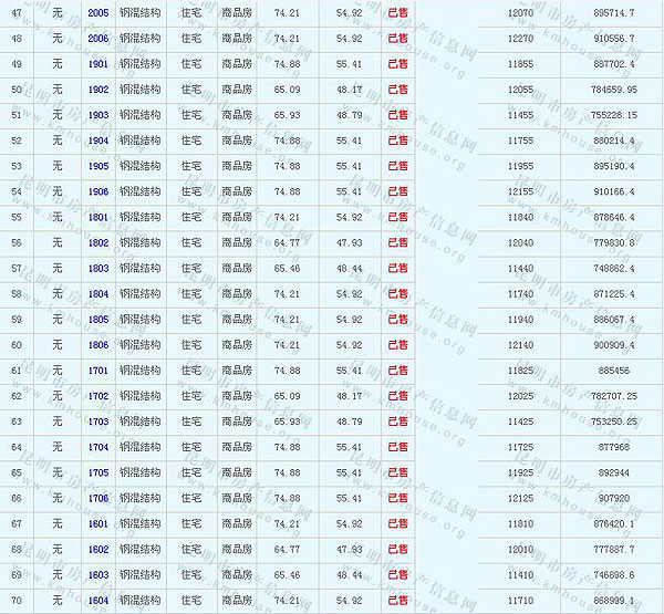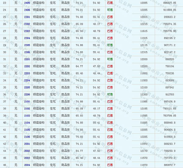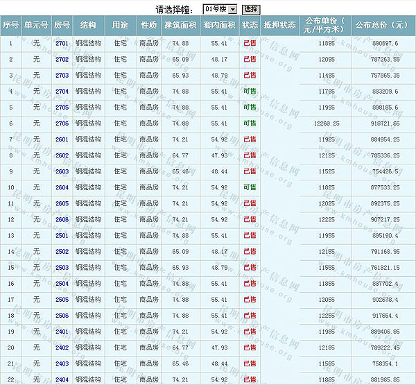 根據(jù)云南省物價局關(guān)于發(fā)布《云南省商品房銷售明碼標價實施細則(試行)》的通知,現(xiàn)將該項目商品住房的準售房源及每套房屋價格向社會公布,房地產(chǎn)開發(fā)企業(yè)應嚴格按照公布價格,商品房銷售明碼標價實行一套一標。商品房經(jīng)營者應當對每套商品房按照建筑面具進行明碼標價,否則,房產(chǎn)登記機關(guān)不予登記備案。準售房源及房價信息如下: