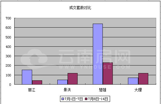 上周麗江景洪楚雄大理成交量有漲有跌(2013.7.8-7.14)