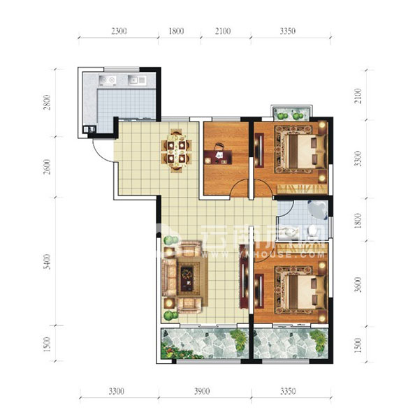 此戶型功能分區(qū)布局合理,生活方便舒適;兩個大面積陽臺分別與客廳及主臥相連,多角度觀賞自然風(fēng)光;書房次臥靈活通便,空間可任意延展;客廳面積超過20平米,南北通透,軒敞明亮大氣。