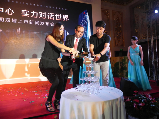 下午2:00,發(fā)布會(huì)正式開始。在主持人的開場(chǎng)白之后,發(fā)布會(huì)正式開始。昆明萬達(dá)廣場(chǎng)投資有限公司副總經(jīng)理唐冰君代表開發(fā)商昆明萬達(dá)上臺(tái)發(fā)言。據(jù)其介紹。“萬達(dá)昆明雙塔”一舉改變昆明商務(wù)形象,徹底終結(jié)昆明寫字樓零散分布格局,全面提升昆明商務(wù)環(huán)境,引領(lǐng)昆明時(shí)代商務(wù)發(fā)展趨勢(shì)。“萬達(dá)昆明雙塔”以標(biāo)桿之姿定鼎金產(chǎn)區(qū),極具辨識(shí)度,在建筑造型、高度、外立面等各方面,都具有標(biāo)志性,為企業(yè)創(chuàng)造無形的財(cái)富價(jià)值,是跨國級(jí)企業(yè)展示形象的最佳商務(wù)平臺(tái)和門面。唐冰君在介紹萬達(dá)昆明雙塔是還說道“萬達(dá)·昆明雙塔”依托萬達(dá)廣場(chǎng)強(qiáng)大的品牌實(shí)力、比肩世界的標(biāo)準(zhǔn)、優(yōu)越的地理區(qū)位、城市綜合體運(yùn)營模式打造最具投資價(jià)值的國際頂級(jí)寫字樓,成為整個(gè)昆明乃至西南首屈一指的地標(biāo)!痹谔瓶傊罗o結(jié)束后還與媒體進(jìn)行了互動(dòng)并抽取了一等獎(jiǎng)(iPhone5一臺(tái))一名并與獲獎(jiǎng)?wù)哌M(jìn)行了合照。