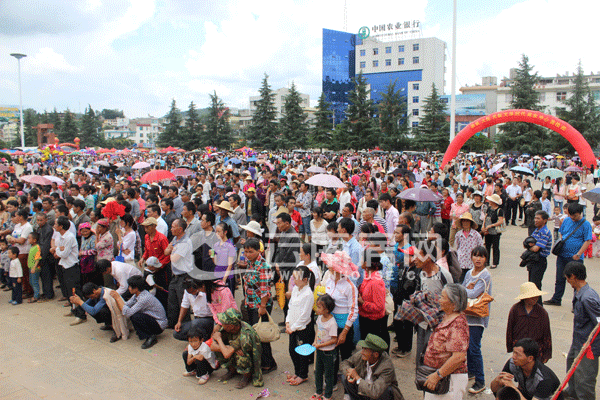 在中午短暫的休息之后。天空放晴。在下午即將開(kāi)啟的“菌香易門,品質(zhì)永德”的主題活動(dòng)舉辦現(xiàn)場(chǎng)易門縣廣場(chǎng)上,上千人已經(jīng)在驕陽(yáng)下逛著菌交會(huì),等候著主題活動(dòng)的正式開(kāi)啟。