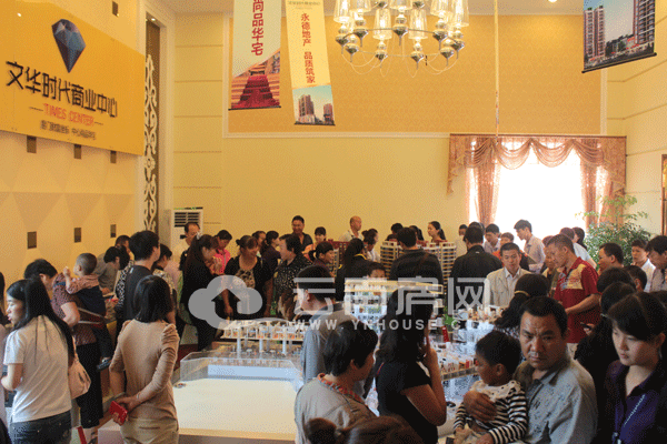 上午9:30分,雨漸漸小了下去。這時在營銷中心門外已經(jīng)聽到主持人熱情洋溢的主持詞,因下雨臨時搭起來的紅色遮雨棚內(nèi),和營銷中心內(nèi)部早已站滿了一大早趕過來的客戶。