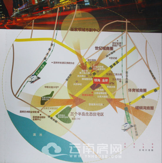 提到昆明城南,首先想到的就是滇池。毗鄰滇池造就了昆明城南稀缺的土地環(huán)境。特別近些年來眾多別墅項(xiàng)目和云南省博物館、云南省大劇院的紛紛入駐使得昆明城南被打上了‘富人區(qū)’的標(biāo)志。然而城南的開發(fā)畢竟是在近十幾年才開展起來的,城南擁有了大量的高端社區(qū),但是配套卻沒趕上住宅開發(fā)的腳步。銀海金岸,一個(gè)新啟動(dòng)的純商業(yè)項(xiàng)目,地處廣福路與珥季路交匯處,寶象河?xùn)|岸,官渡古鎮(zhèn)正對(duì)面?梢哉f是地處三個(gè)生態(tài)半島高端社區(qū)的門戶位置。這一塊號(hào)稱“唐僧肉”的商業(yè)地塊,到底精貴在哪呢?小編決定前往項(xiàng)目的銷售中心一探究竟。