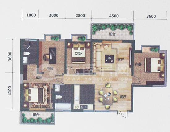 格局:4室2廳1廚2衛(wèi)2陽(yáng)臺(tái)