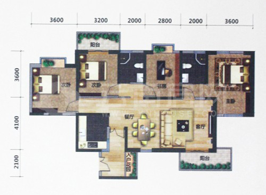 點評:該戶型三面采光,室內(nèi)通透明亮。入口玄關(guān)設(shè)計,還有入戶花園,空間自然延伸。有獨立書房,使工作學(xué)習(xí)與休息空間互不干擾。客廳寬敞,與L型景觀陽臺相連,活動空間更大。從戶型圖上可見,每個空間都是明亮的,三個臥室和書房的采光都很好,陽臺、飄窗讓視野更寬廣,唯一的瑕疵就是廚房采光稍弱,要通過入戶花園進入過道采光,但也不影響起居。