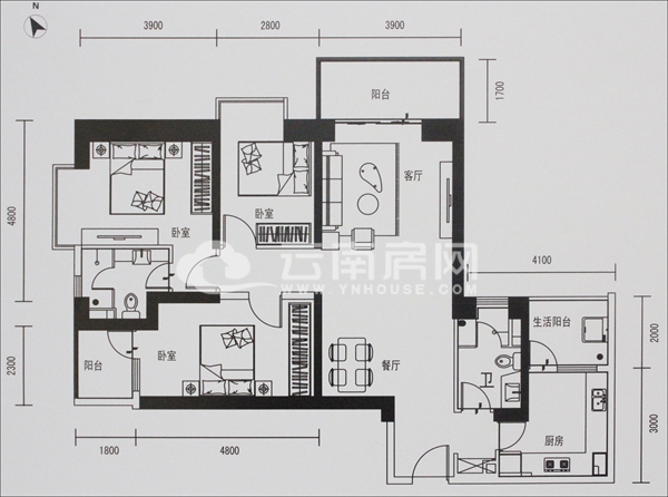 不足之處:本戶型開門即為衛(wèi)生間,且衛(wèi)生間與廚房相連,業(yè)主在裝修的過程中可巧妙設計,避免相互影響。