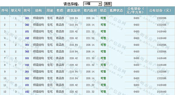 根據(jù)云南省物價局關(guān)于發(fā)布《云南省商品房銷售明碼標價實施細則(試行)》的通知,現(xiàn)將該項目商品住房的準售房源及每套房屋價格向社會公布,房地產(chǎn)開發(fā)企業(yè)應嚴格按照公布價格,商品房銷售明碼標價實行一套一標。商品房經(jīng)營者應當對每套商品房按照建筑面具進行明碼標價,否則,房產(chǎn)登記機關(guān)不予登記備案。準售房源及房價信息如下: