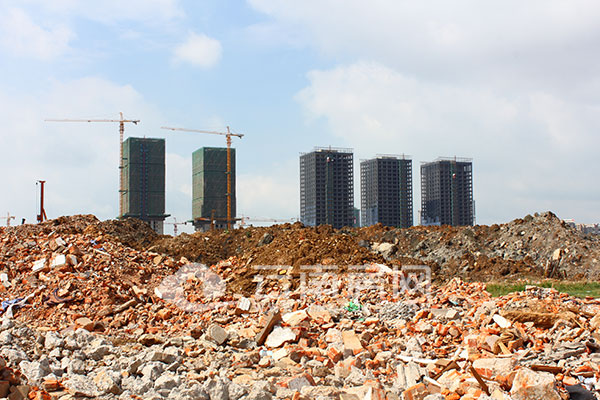 金產(chǎn)區(qū)正在拆遷的與新建的交融