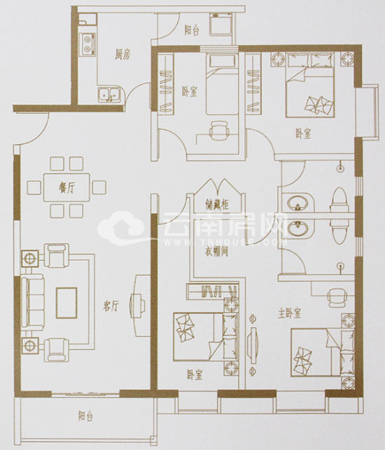 139㎡的四房戶型,可以說是三房的豪華升級版。衣帽間和儲藏柜的規(guī)劃大大方便了主任的日常生活。獨立封閉式的廚房剛好符合了中餐烹飪的習(xí)慣。休息區(qū)與日常生活區(qū)也完全的分開了,比較能突出屋住的身份。要說美中不足的就是四個臥室相對相連的設(shè)計太過緊湊。除主臥之外其他三室設(shè)計無太多差別。唯有靠個性化裝修來彌補。