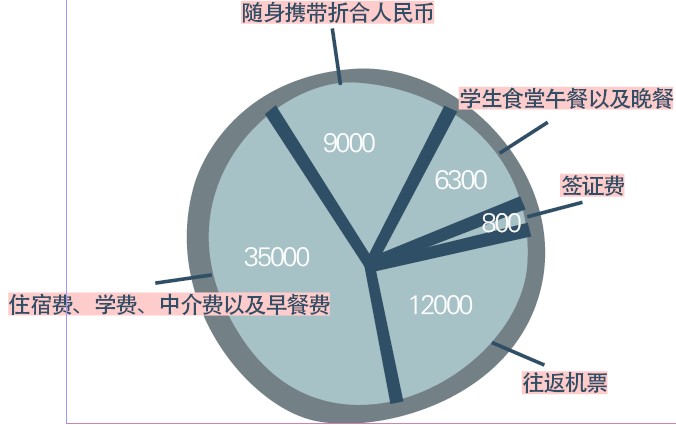 住宿費(fèi)、學(xué)費(fèi)、中介費(fèi)以及早餐費(fèi)共計人民幣3.5萬元;